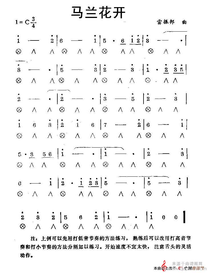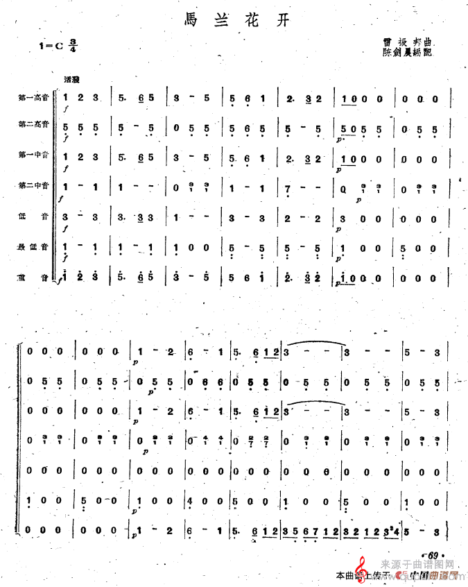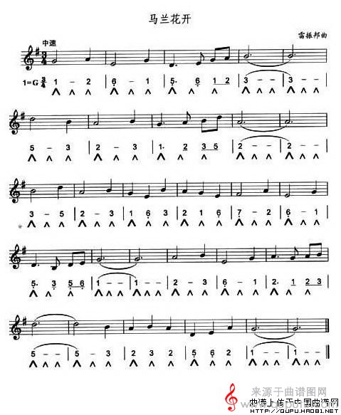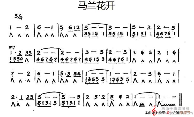 曲谱图网为您提供马兰花开(口琴曲独奏合奏简谱)找谱子,就上曲谱图网。