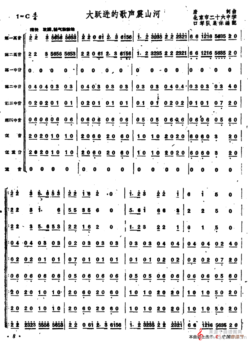 曲谱图网为您提供大跃进的歌声震山河(口琴合奏简谱)找谱子,就上曲谱图网。
