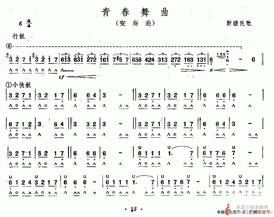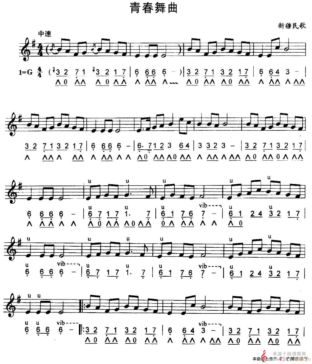 曲谱图网为您提供青春舞曲(口琴曲五线简谱混排对照版)找谱子,就上曲谱图网。