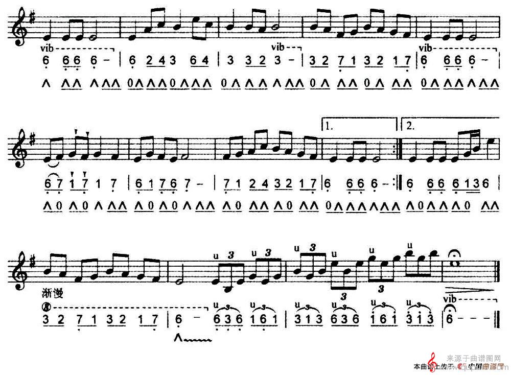 提示:在曲谱图片上单击右键,选择“图片另存为...”即可将曲谱保存到您的电脑中,打印时候可将图片插入到WORD中,调整合适大小打印即可。