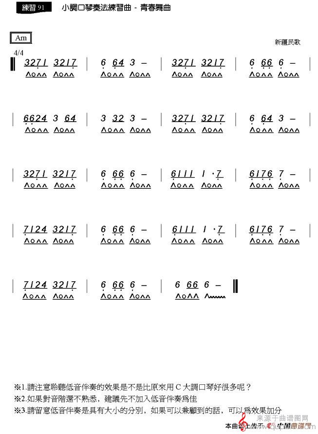 版本二:小调口琴奏法练习曲《青春舞曲》