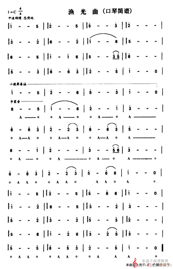 渔光曲(渔光曲 口琴曲独奏简谱)