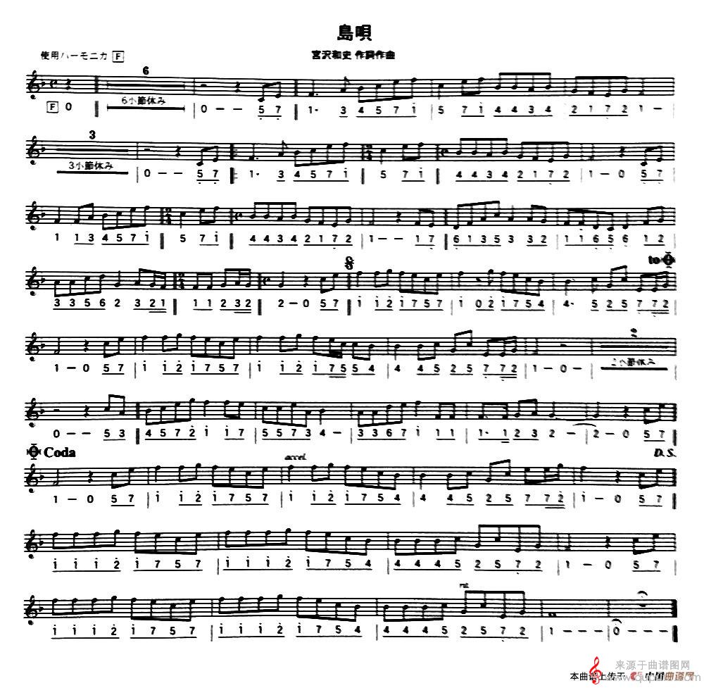 曲谱图网为您提供岛(口琴曲五线简谱混排版)找谱子,就上曲谱图网。