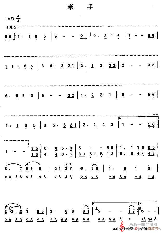 曲谱图网为您提供牵手(牵手口琴曲演奏吹奏简谱)找谱子,就上曲谱图网。