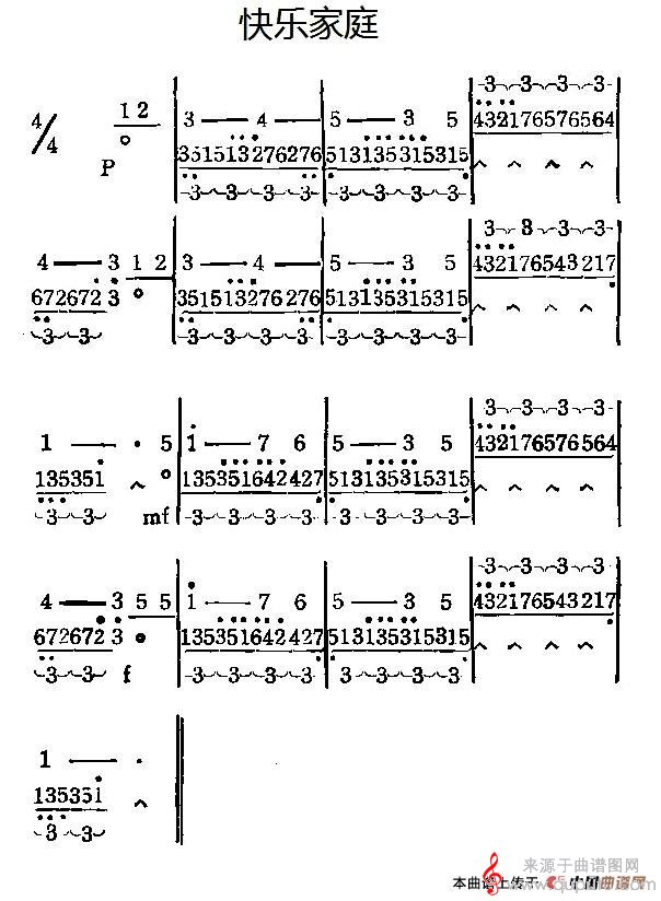 曲谱图网为您提供快乐家庭(口琴曲独奏演奏简谱考级)找谱子,就上曲谱图网。