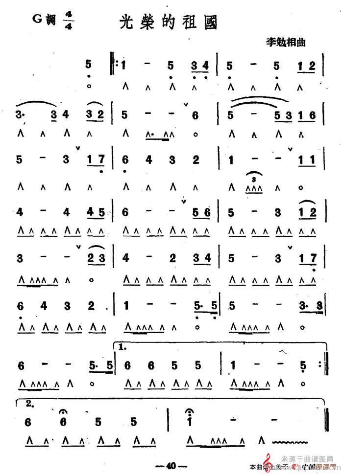 曲谱图网为您提供光荣的祖国(口琴曲独奏演奏简谱)找谱子,就上曲谱图网。