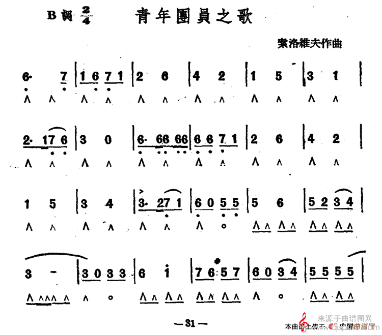 曲谱图网为您提供青年团员之歌(口琴曲简谱)找谱子,就上曲谱图网。