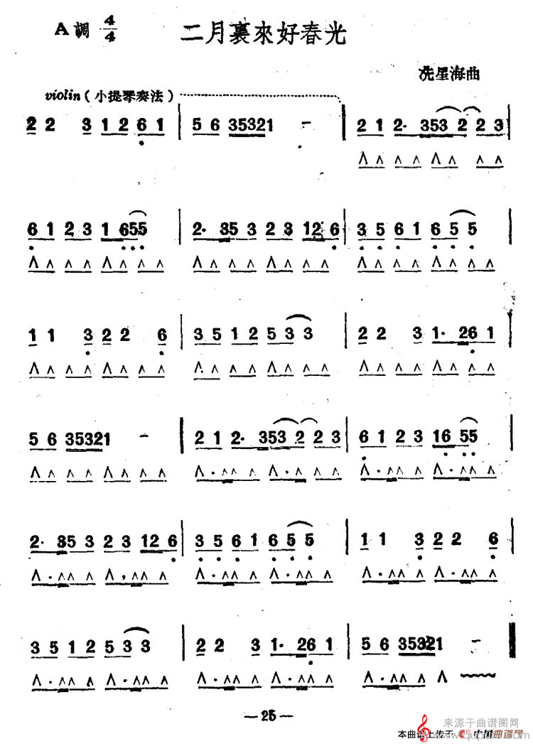 曲谱图网为您提供二月里来好春光(口琴曲独奏演奏简谱)找谱子,就上曲谱图网。