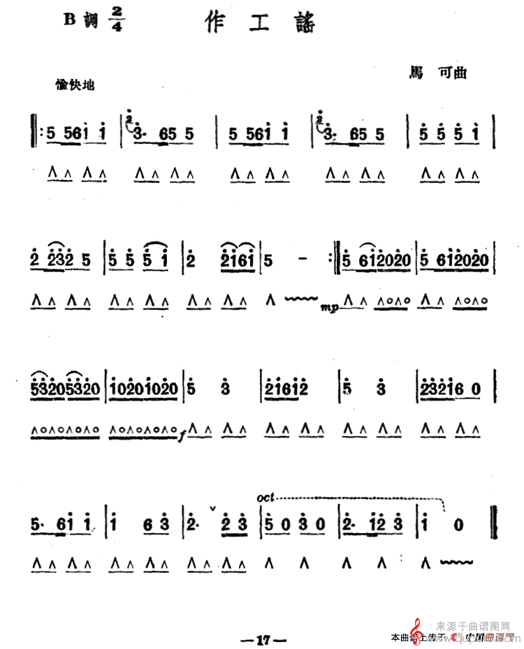 曲谱图网为您提供作工谣(口琴曲简谱)找谱子,就上曲谱图网。