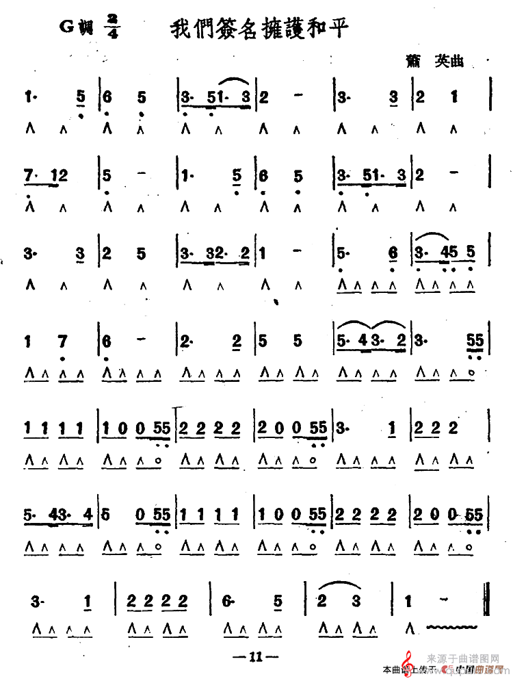 曲谱图网为您提供我们签名拥护和平(口琴曲演奏简谱)找谱子,就上曲谱图网。