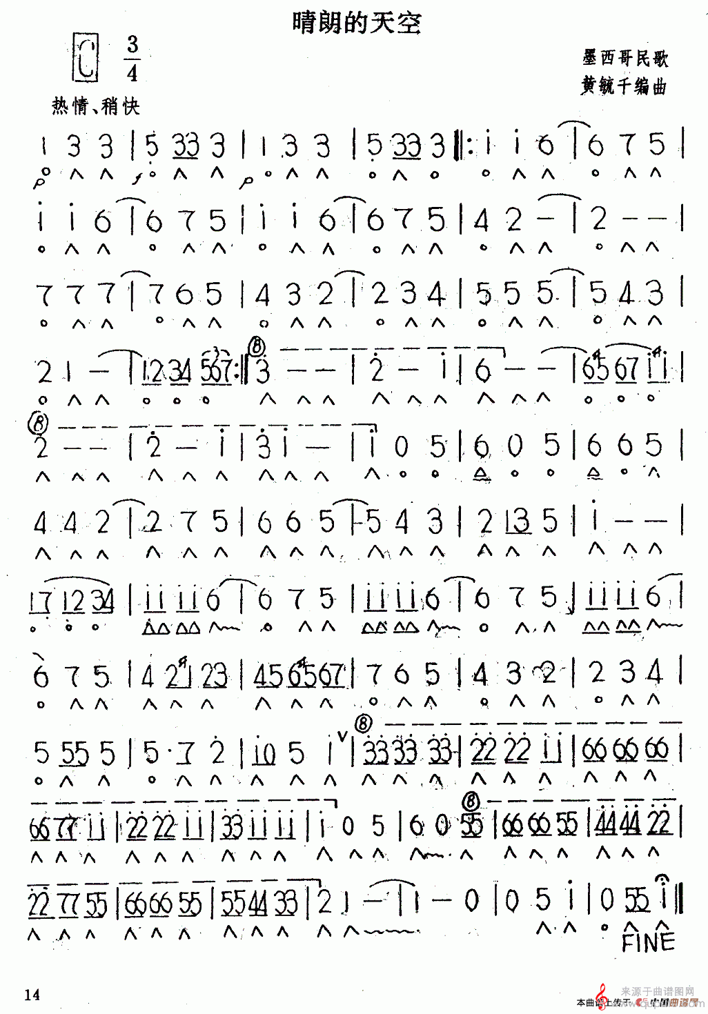 曲谱图网为您提供晴朗的天空(口琴曲吹奏演奏简谱)找谱子,就上曲谱图网。