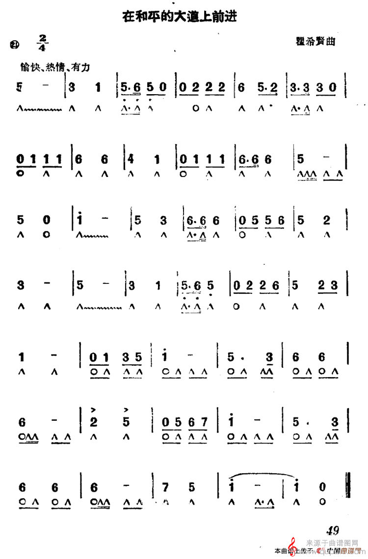 曲谱图网为您提供在和平的大道上前进(口琴曲简谱)找谱子,就上曲谱图网。