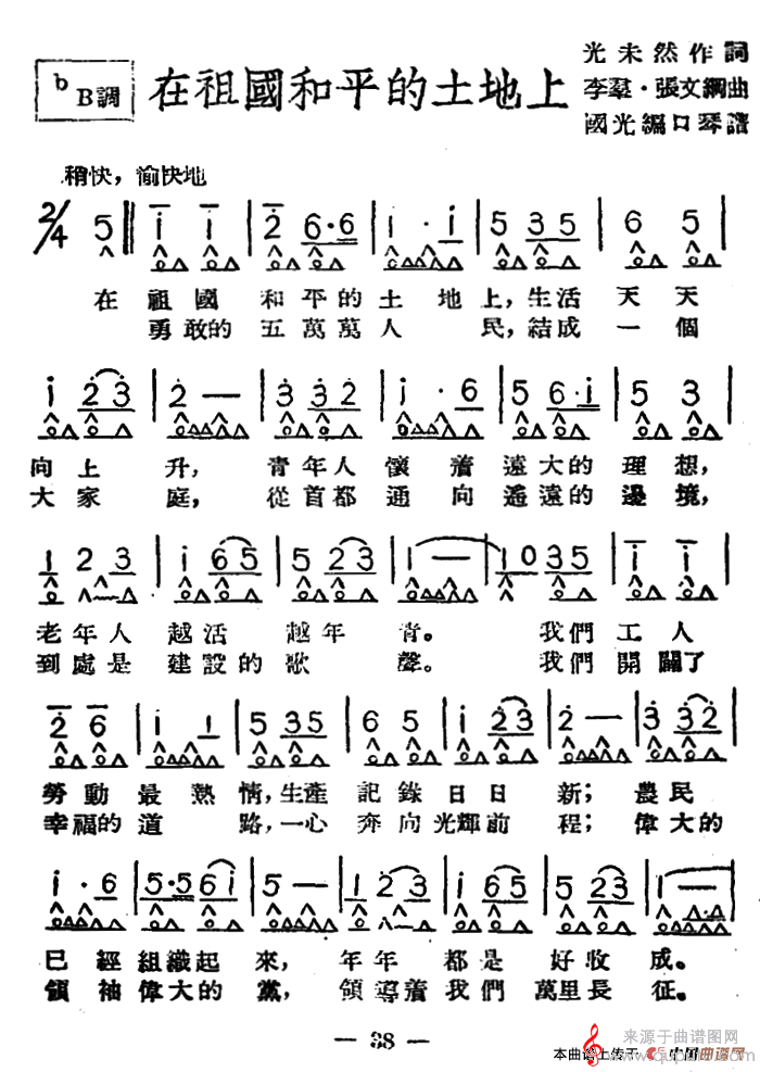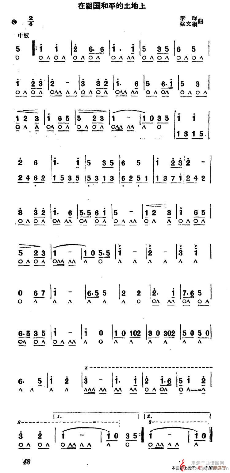 曲谱图网为您提供在祖国和平的土地上(口琴曲简谱)找谱子,就上曲谱图网。