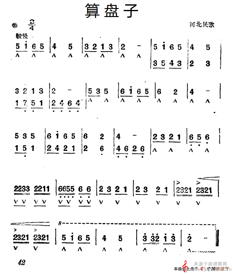 曲谱图网为您提供算盘子(河北民歌口琴曲简谱)找谱子,就上曲谱图网。