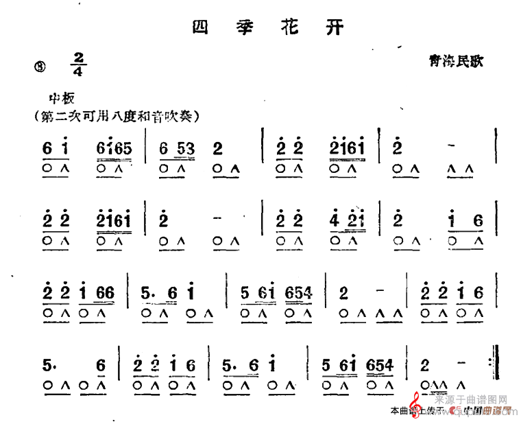 曲谱图网为您提供四季花开(青海民歌口琴曲吹奏简谱)找谱子,就上曲谱图网。
