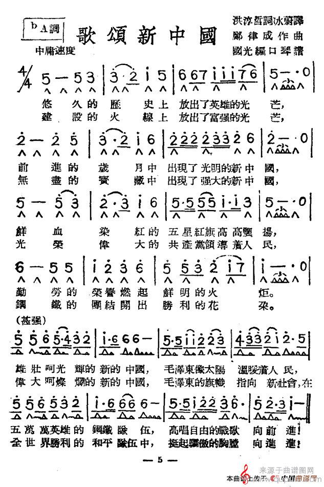 曲谱图网为您提供歌颂新中国(口琴曲演奏独奏简谱带歌词)找谱子,就上曲谱图网。