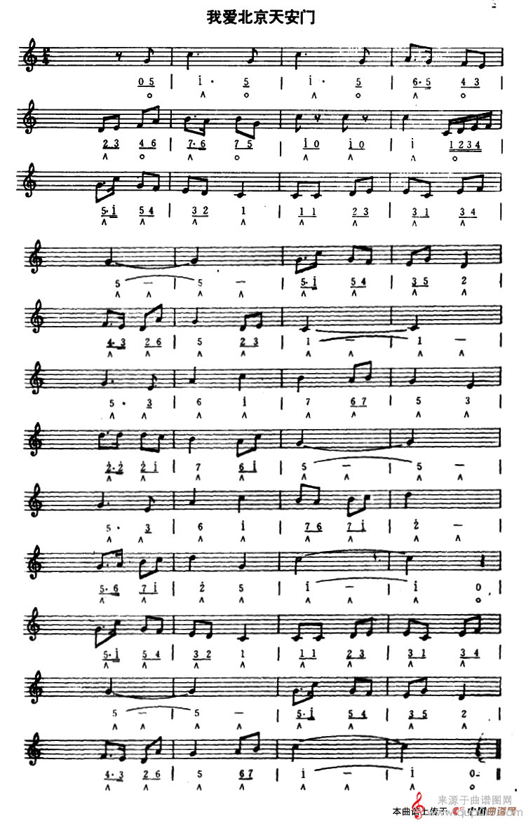 曲谱图网为您提供我爱北京天安门(口琴曲独奏简谱)找谱子,就上曲谱图网。