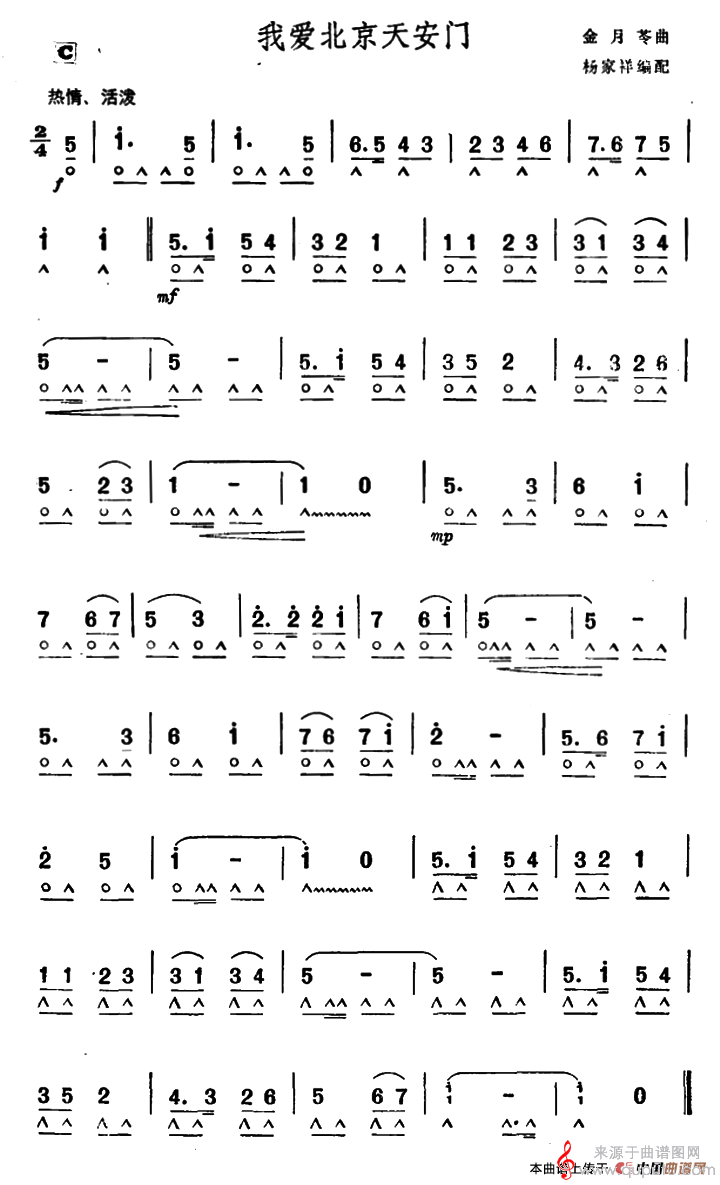 线简谱混排版《我爱北京天安门》