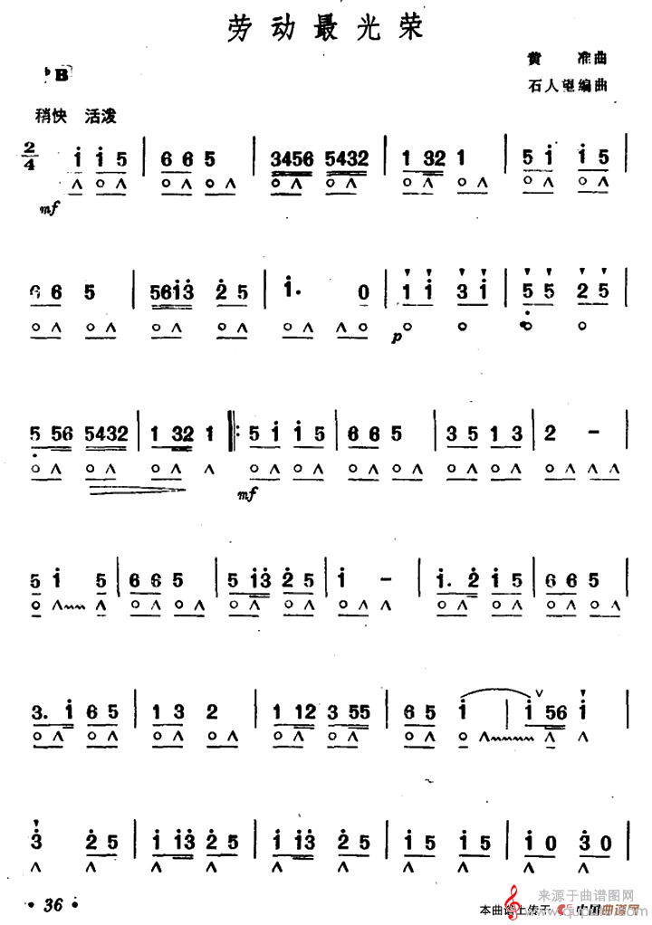 曲谱图网为您提供劳动最光荣(口琴曲独奏简谱)找谱子,就上曲谱图网。