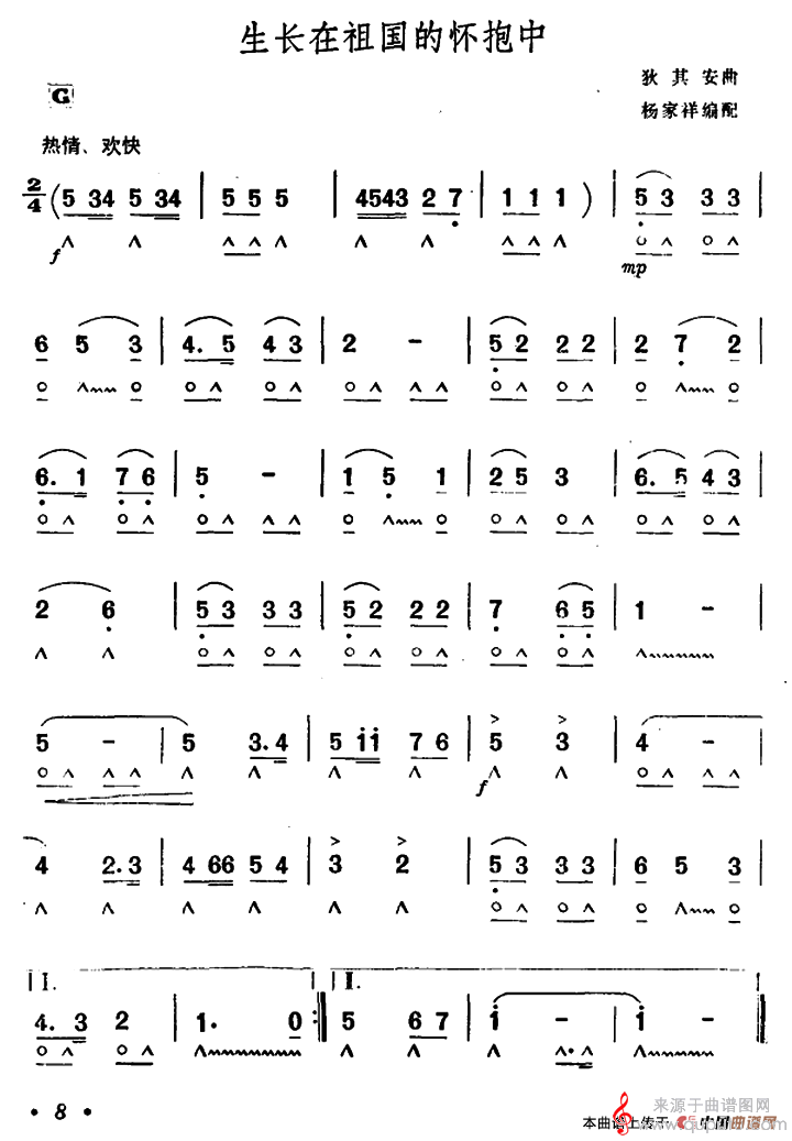 生长在祖国的怀抱中(口琴曲伴奏简谱)