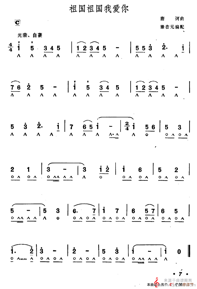 曲谱图网为您提供祖国祖国我爱你(口琴曲演奏简谱)找谱子,就上曲谱图网。