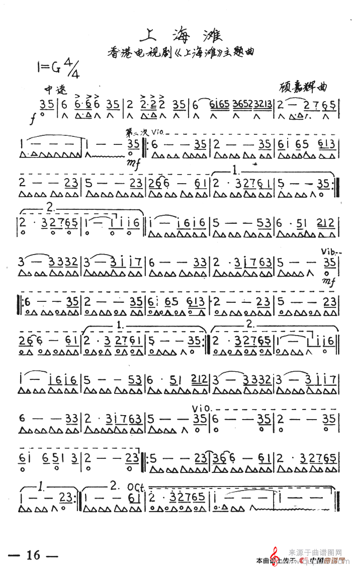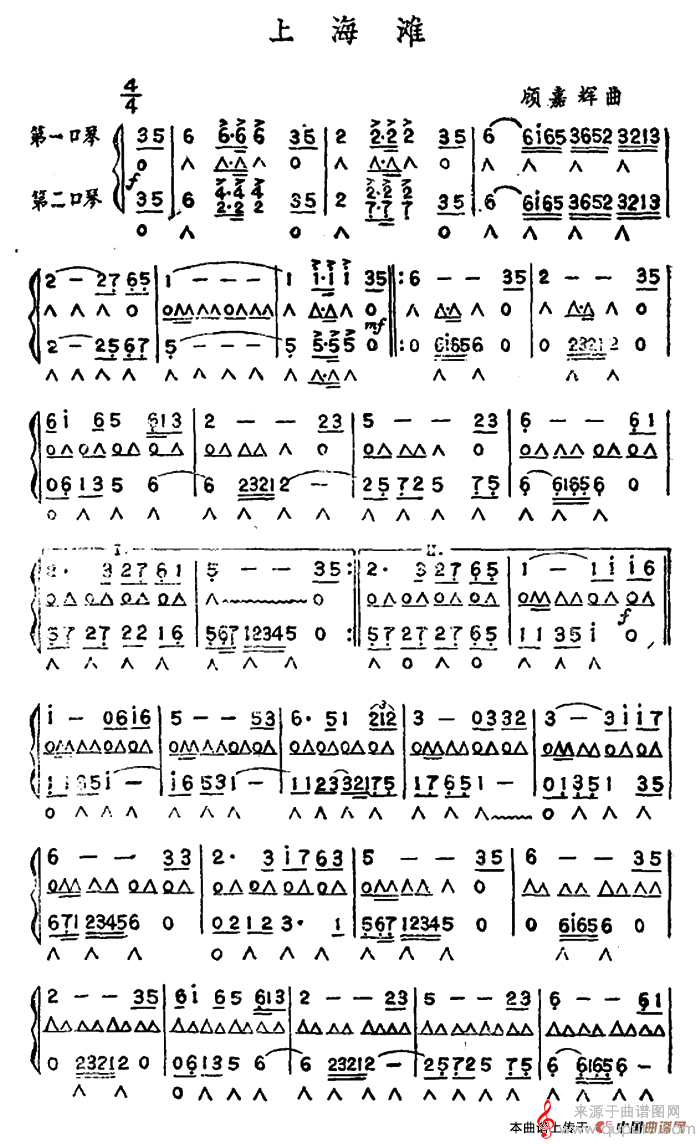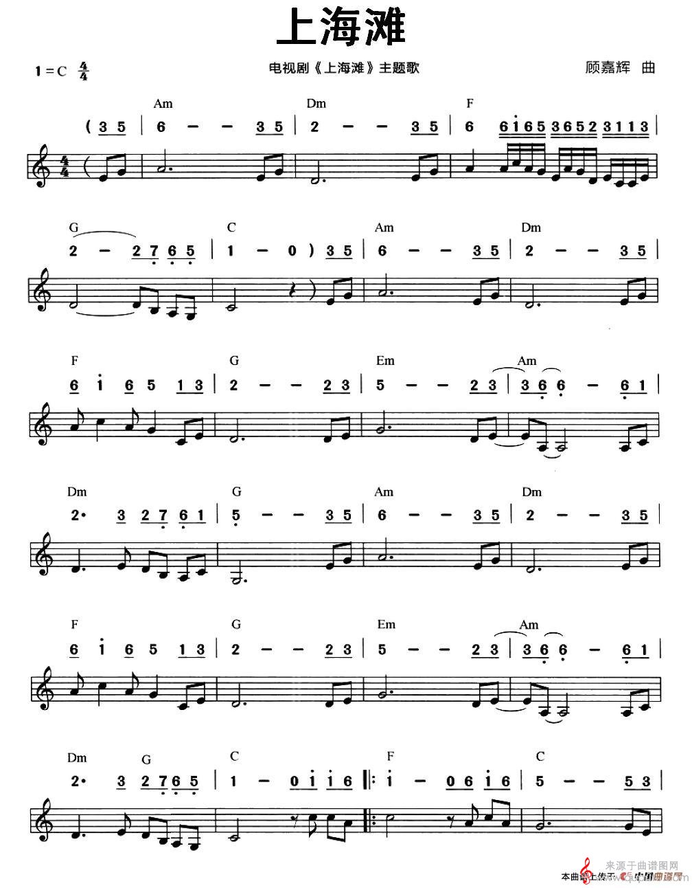曲谱图网为您提供上海滩(口琴曲独奏教学简谱)找谱子,就上曲谱图网。