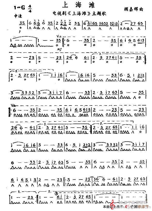 版本四:电视剧电视剧主题歌《上海滩》手抄板