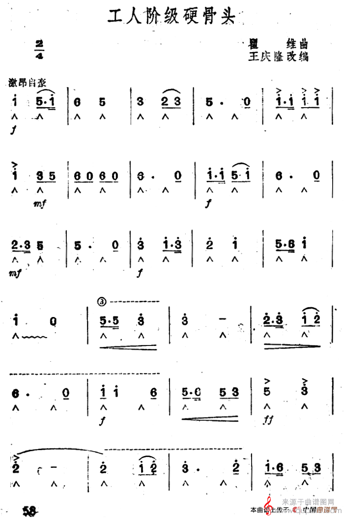 曲谱图网为您提供工人阶级硬骨头(口琴曲伴奏简谱)找谱子,就上曲谱图网。
