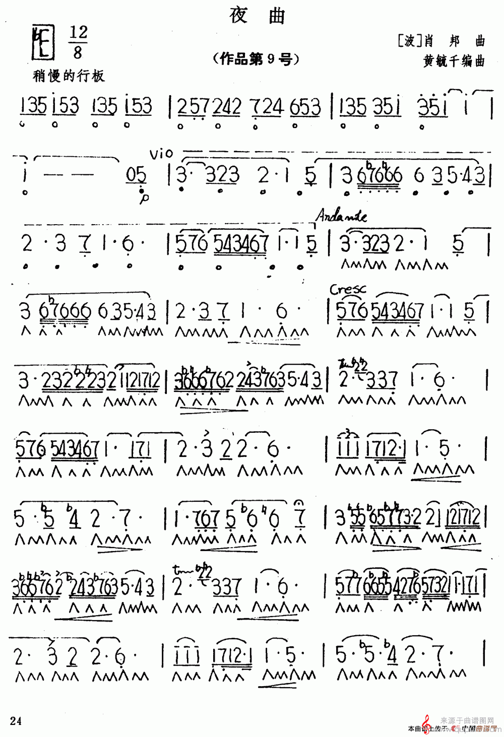 夜曲(肖邦口琴曲演奏简谱)
