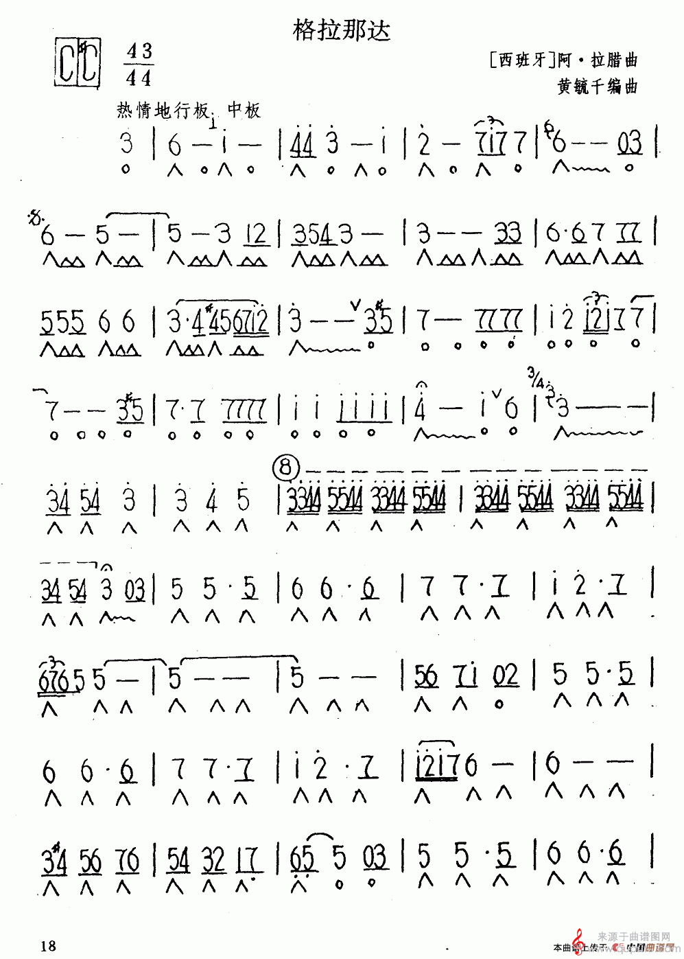 曲谱图网为您提供格拉娜达(口琴曲独奏简谱)找谱子,就上曲谱图网。