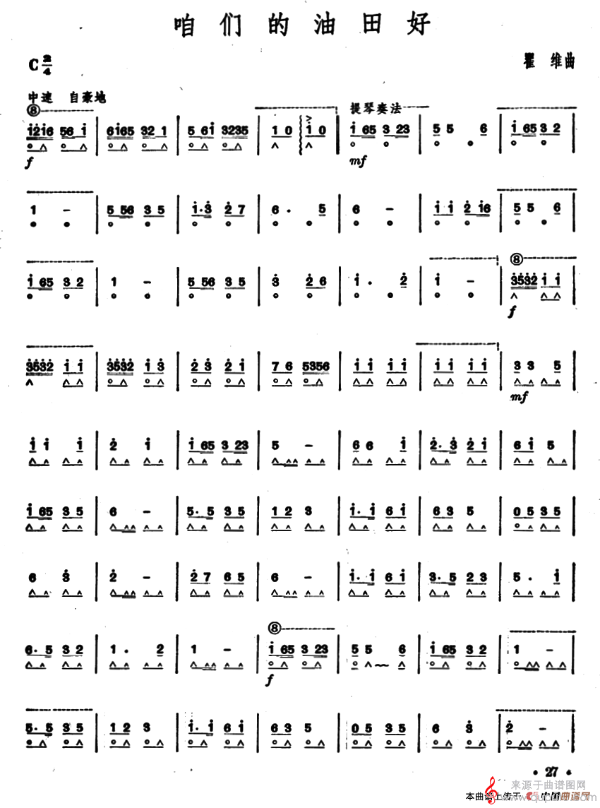 曲谱图网为您提供咱们的油田好(口琴曲简谱)找谱子,就上曲谱图网。
