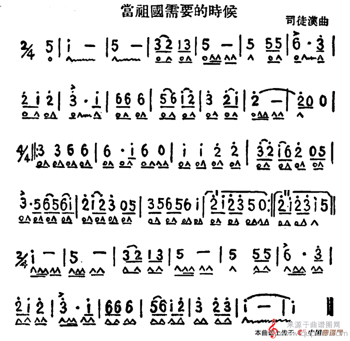 曲谱图网为您提供当祖国需要的时候(口琴简谱)找谱子,就上曲谱图网。