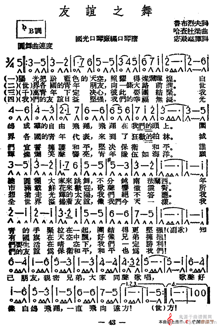 曲谱图网为您提供友谊之舞(口琴曲独奏简谱)找谱子,就上曲谱图网。