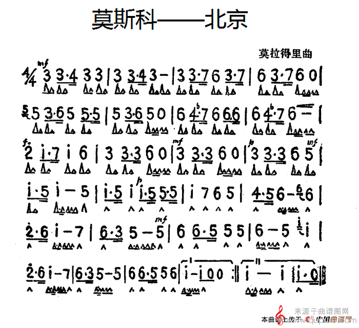 曲谱图网为您提供莫斯科北京(口琴曲独奏简谱)找谱子,就上曲谱图网。