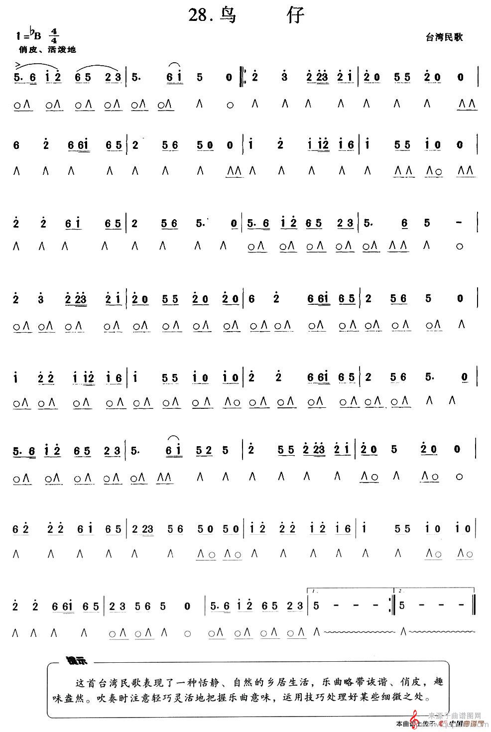 曲谱图网为您提供鸟仔(口琴曲简谱)找谱子,就上曲谱图网。