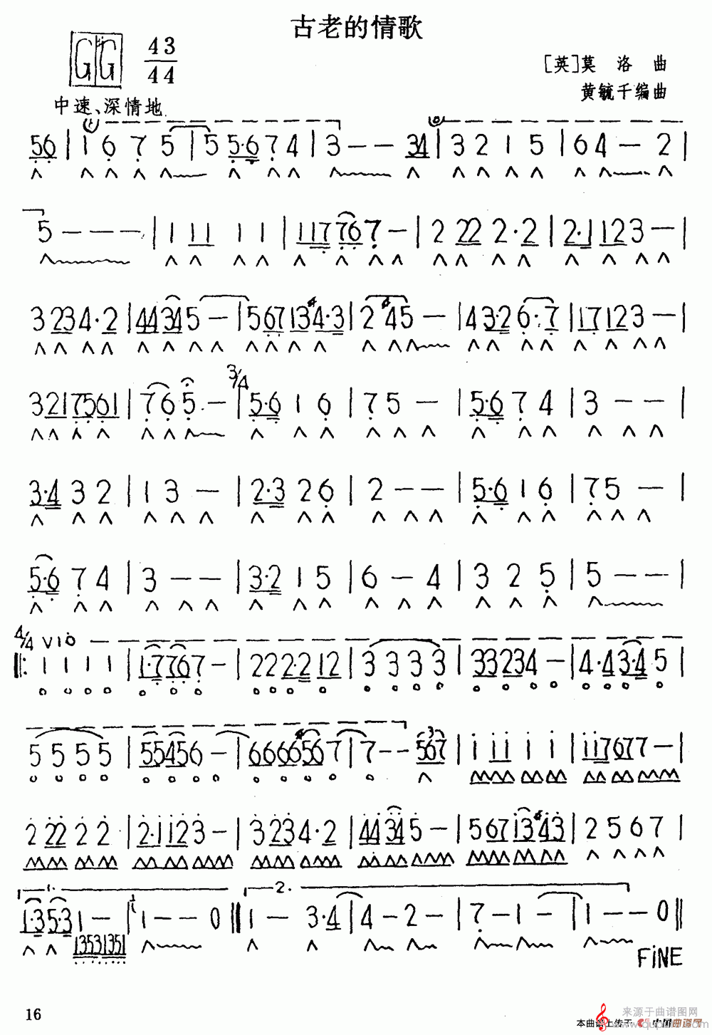 曲谱图网为您提供古老的情歌(口琴独奏演奏简谱)找谱子,就上曲谱图网。