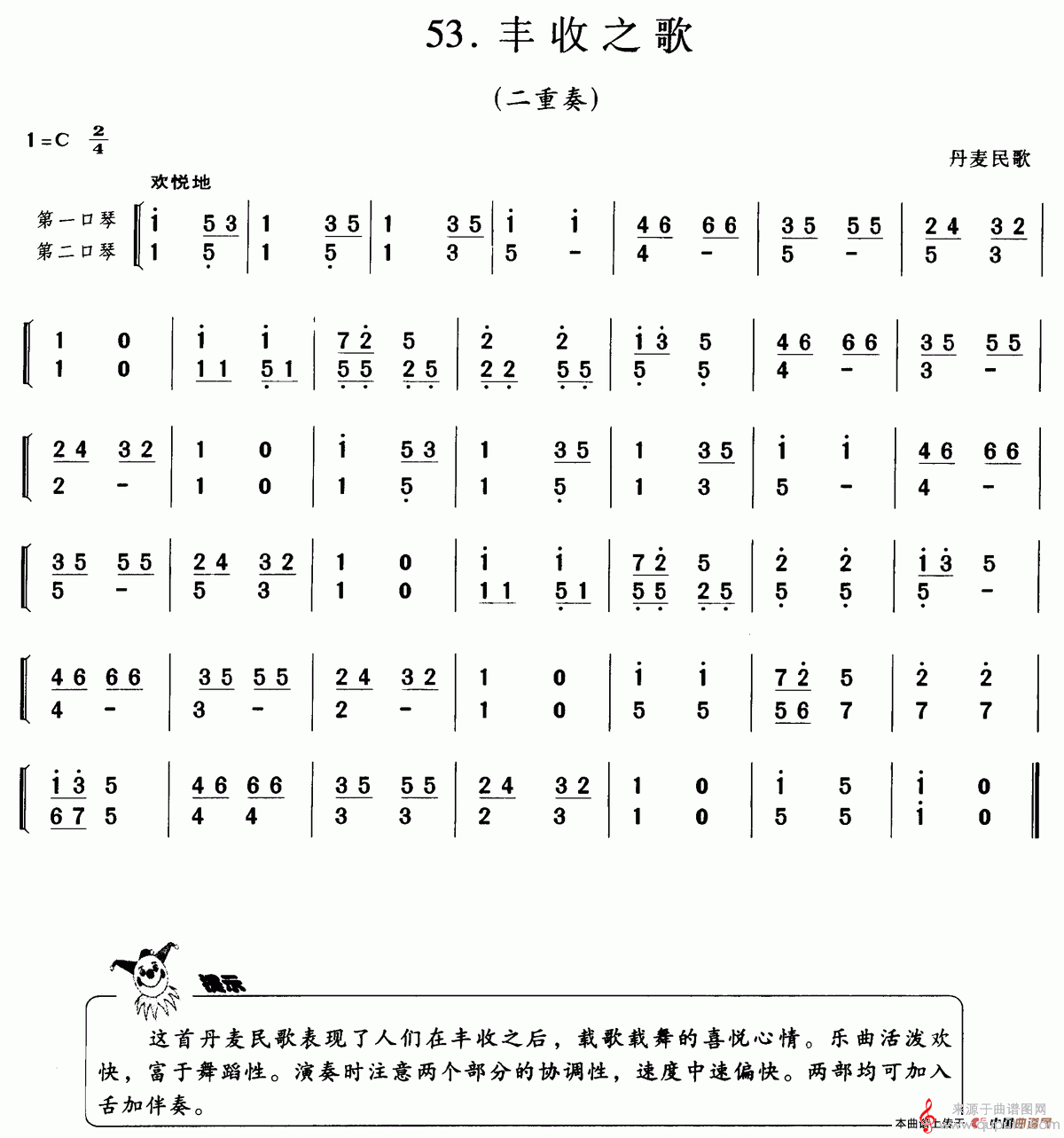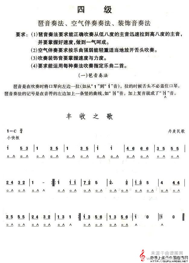 丹麦民歌、二重奏、考级四级曲目《丰收之歌》