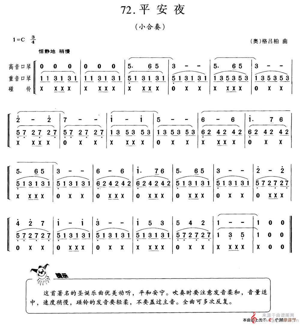 曲谱图网为您提供平安夜(口琴曲演奏简谱小合奏)找谱子,就上曲谱图网。