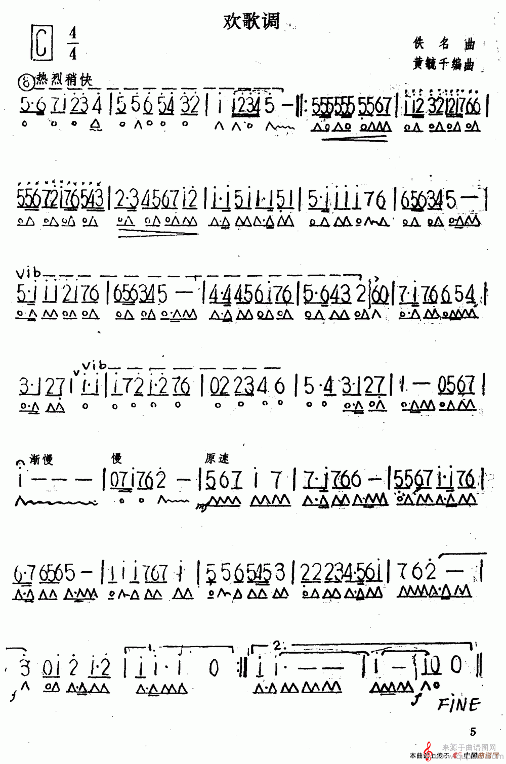 曲谱图网为您提供欢歌调(口琴曲C调独奏演奏简谱)找谱子,就上曲谱图网。