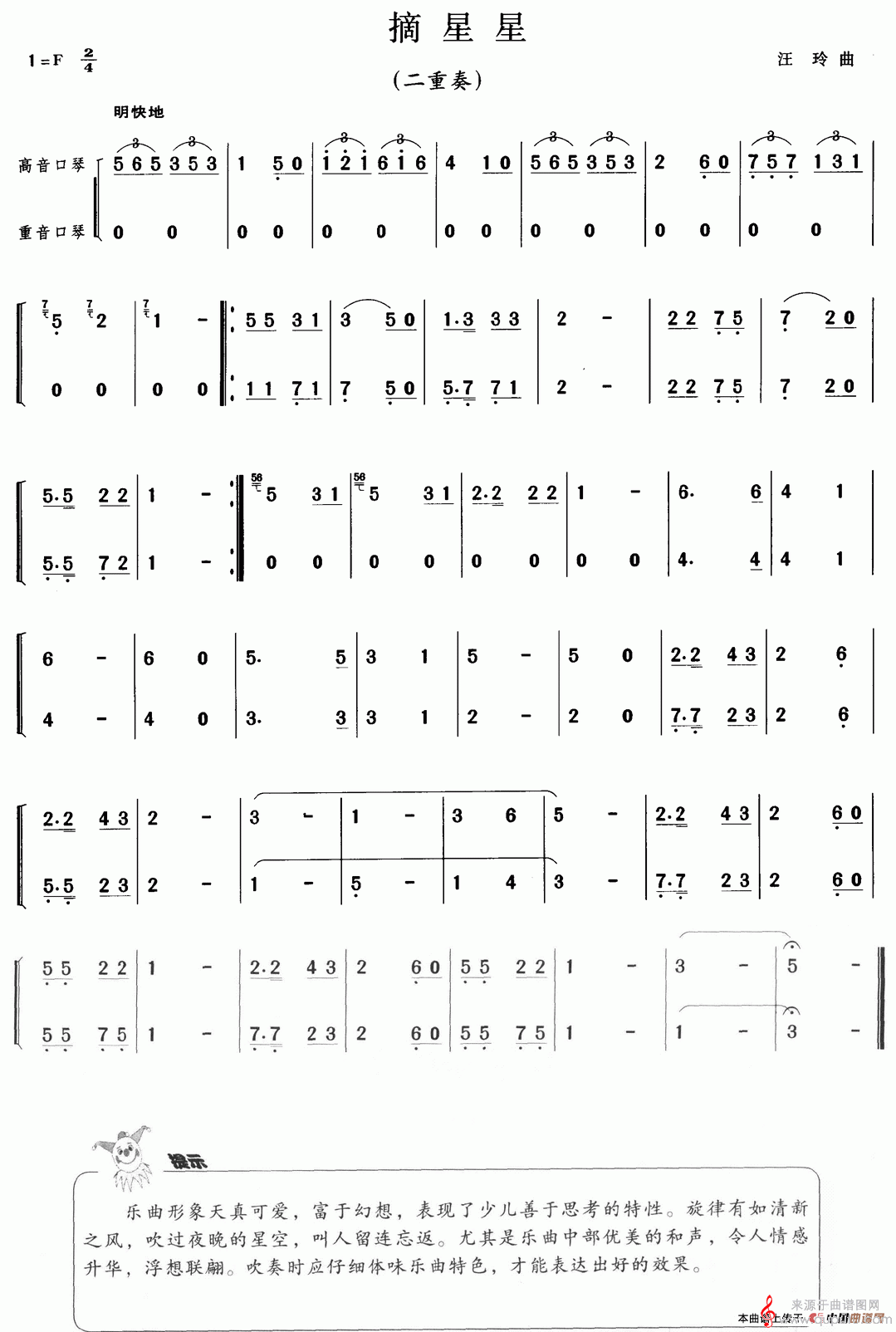 曲谱图网为您提供摘星星(口琴二重奏曲谱)找谱子,就上曲谱图网。