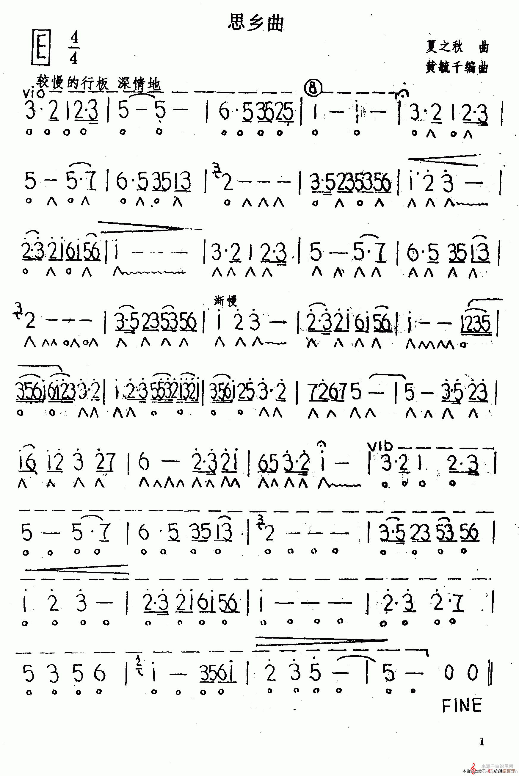 曲谱图网为您提供思乡曲(口琴曲独奏简谱)找谱子,就上曲谱图网。