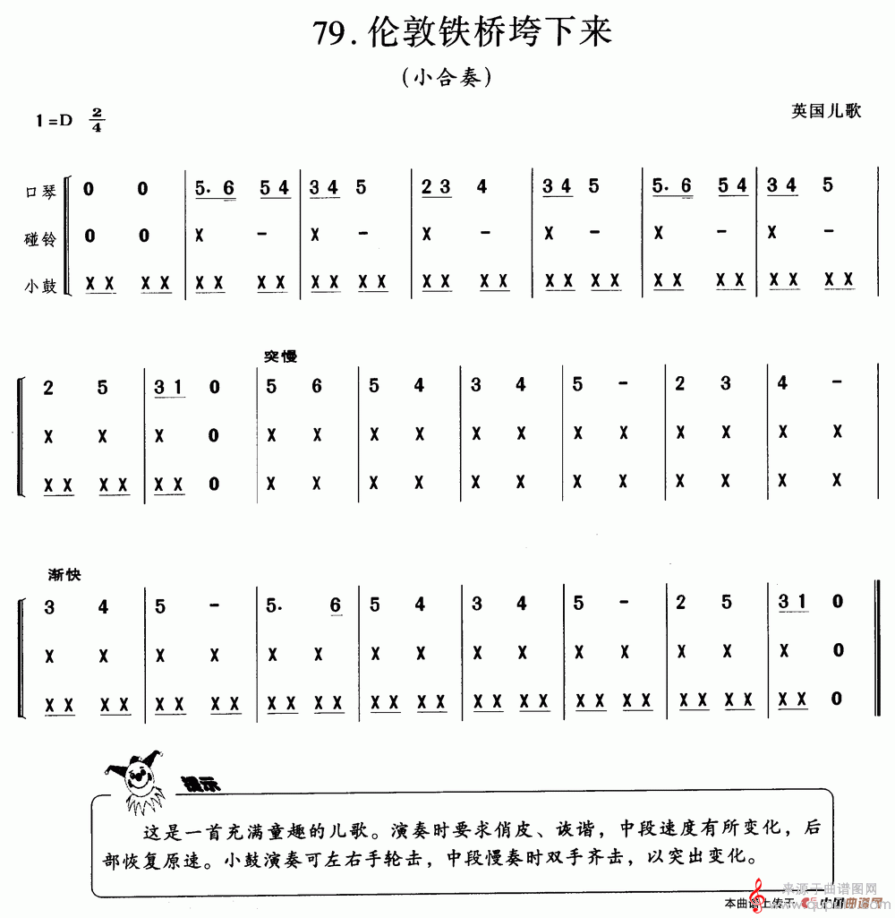 英国儿歌、小合奏版(口琴、碰铃、小鼓)《伦敦铁桥垮下来》