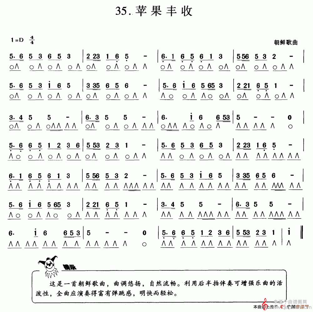 曲谱图网为您提供苹果丰收(口琴曲独奏演奏简谱)找谱子,就上曲谱图网。