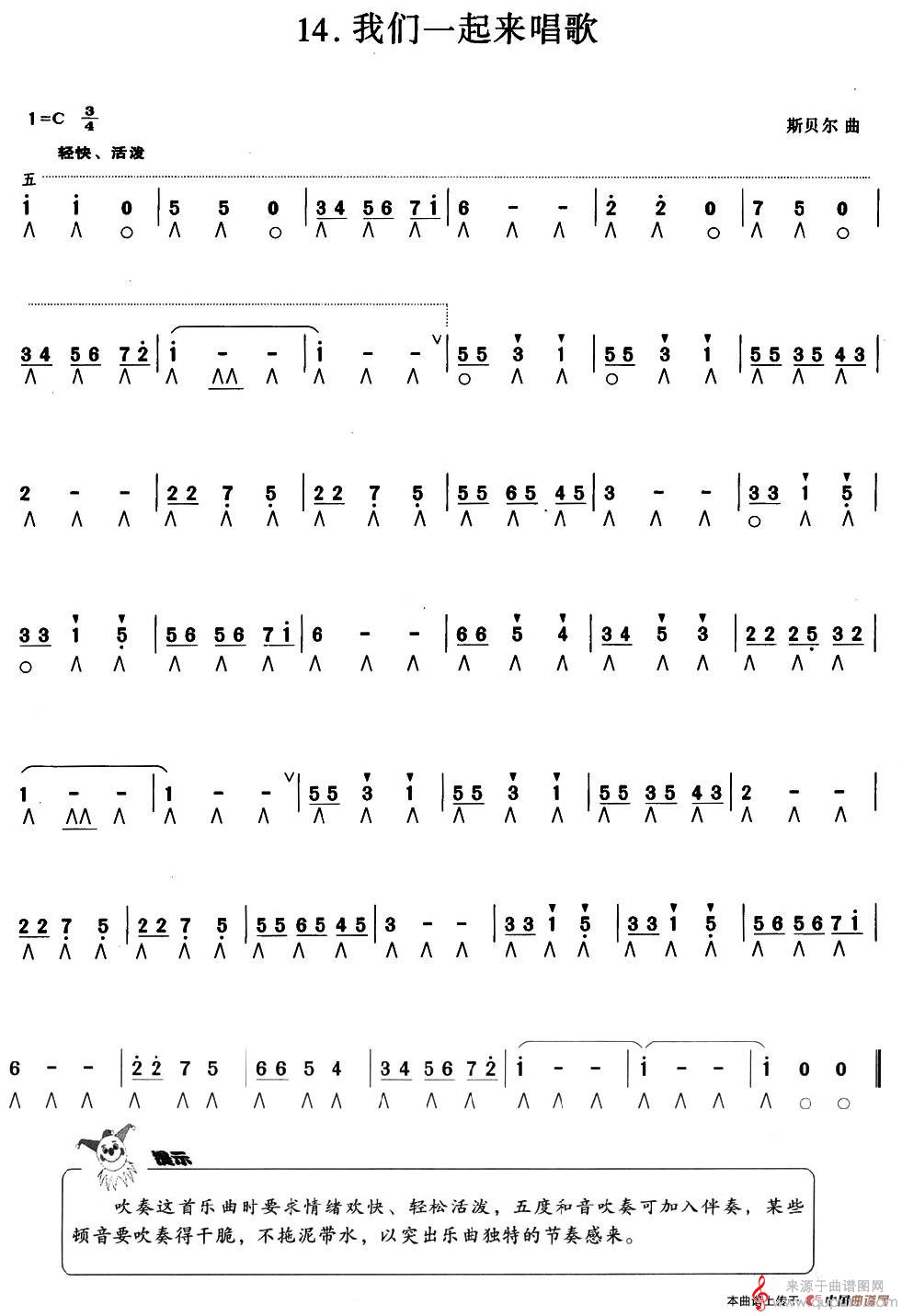曲谱图网为您提供我们一起来唱歌(口琴曲简谱)找谱子,就上曲谱图网。
