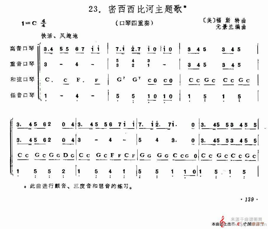 密西西比河主题歌(口琴四重奏简谱)