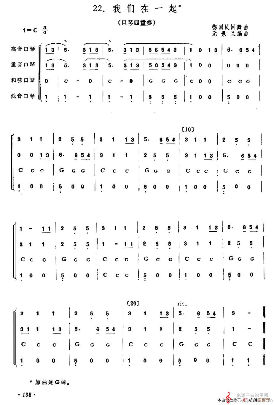 曲谱图网为您提供我们在一起(口琴曲四重奏教学简谱)找谱子,就上曲谱图网。