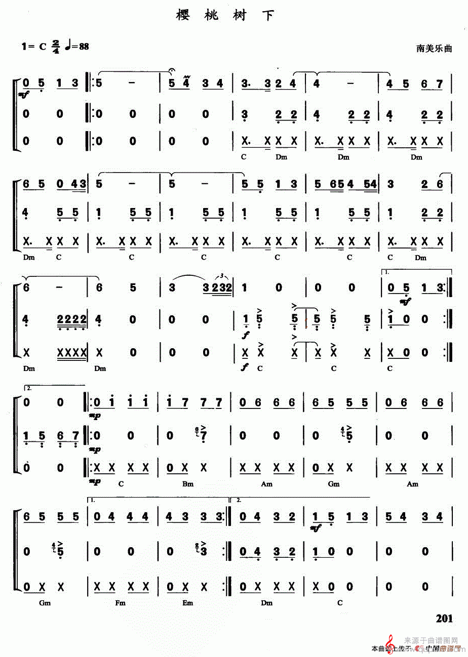 曲谱图网为您提供樱桃树下(口琴曲独奏演奏简谱)找谱子,就上曲谱图网。