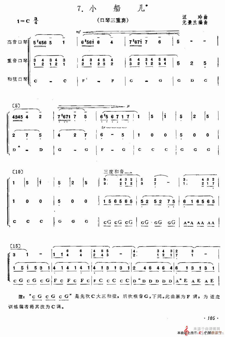 口琴三重奏(高音、重音、和弦)版《小船儿》