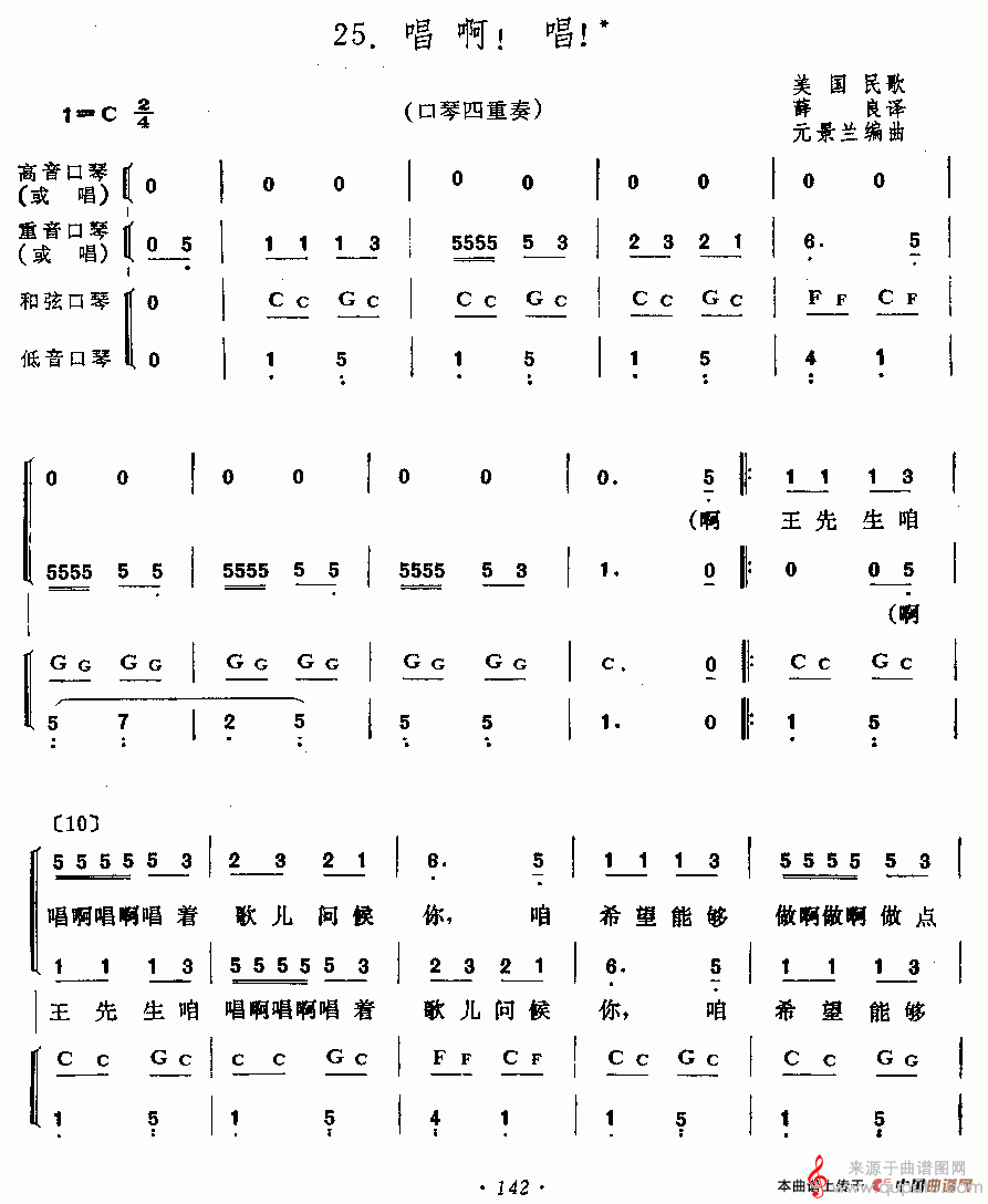 曲谱图网为您提供唱啊唱(口琴曲四重奏简谱)找谱子,就上曲谱图网。