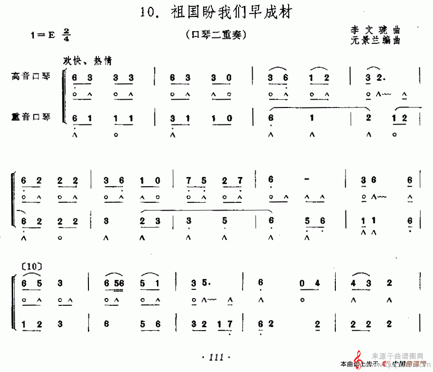 曲谱图网为您提供祖国盼我们早成材(口琴二重奏演奏简谱)找谱子,就上曲谱图网。